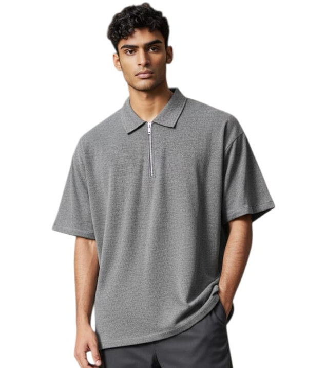 This heavy zip-collar T-shirt is crafted from thick, high-quality fabric that offers durability and a premium feel. Designed with a sturdy front zipper at the collar, it adds a modern, sporty edge while allowing adjustable styling—wear it zipped up for a sharp finish or slightly open for a relaxed vibe. The structured fit enhances your silhouette, making it perfect for casual outings, streetwear styling, or layered looks. Comfortable, versatile, and built to last, this piece combines functionality with standout style.